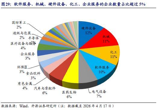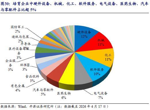 从行业散布来看,硬件开荒、机械、化工、软件工作、电气开荒、医药生物、汽车与零配件占比超5%。