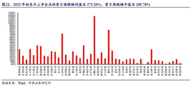 2025年1月1日至2026年4月17日,46家上市企业的刊行市盈率均值为13.52X、中值为14.51X;首日涨跌幅均值为273.20%,首日涨跌幅中值为185.78%。