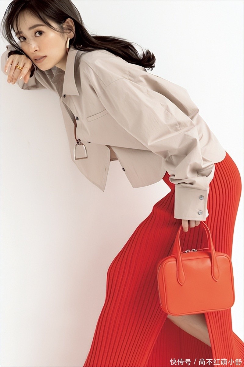 强烈红色真挚裙叠穿米色衬衫,可以单穿也可以内搭背心,从简又洋气。颜色上对比剖析裕如端倪,既显白又提气质,收缩穿出惊艳又多礼的斯文感。