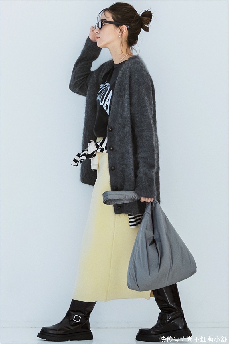 tips2、落魄略有各异颜色:博主这套搭配中,上身搭配灰色,真挚裙遴荐调略有各异的深咖色毛衣,再辅以咖色的鞋包。这种在合并色系中通过明度、弥漫度变化营造出的端倪感,极致谐和又裕如深度,收缩穿出预防知性的气质。