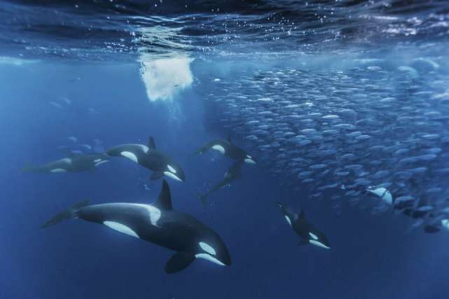 它们擅长团体作案,并列游动掀翻波涛,意图将浮冰上的海豹打入水中,好将其吃掉。