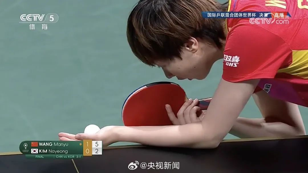 第二盘为女单比赛,由王曼昱对阵金娜英。此前,王曼昱在本届赛事中出战六盘女单比赛均以3-0完胜,本场比赛王曼昱陆续了我方的这一记录,以11-3、11-7、11-2横扫敌手,整届赛事保合手一局未失!