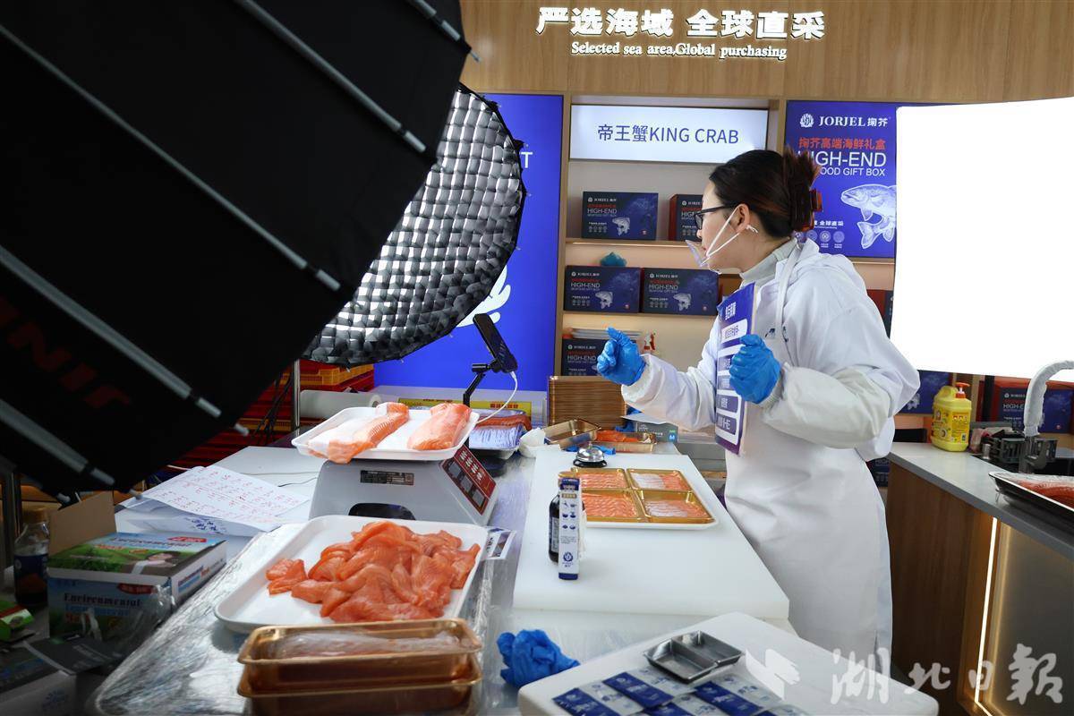 亚洲最大三文鱼智能出产线春节“爆单”。图为工场直播间。湖北日报全媒记者周鹏摄