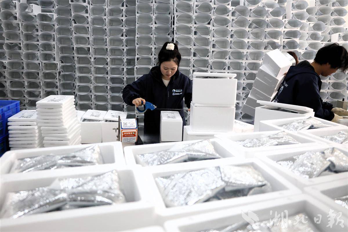 亚洲最大三文鱼智能出产线春节“爆单”。图为打包现场。湖北日报全媒记者周鹏摄